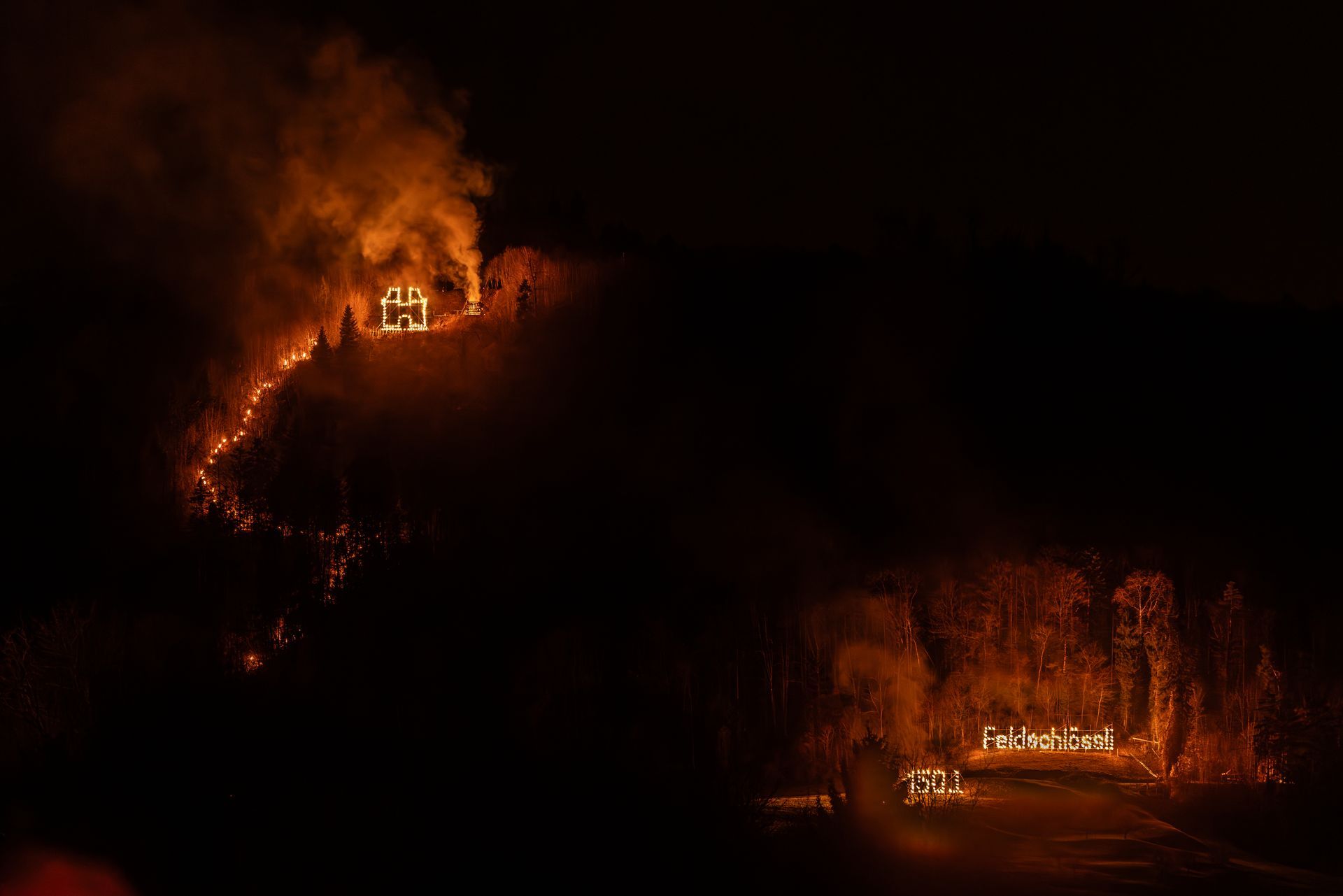Das Sturmtief "Eberhard" wirkte über beide Tage bei den Vorbereitungen bei den Feuerbildern ist die Wirkung des Westwindes sichtbar.