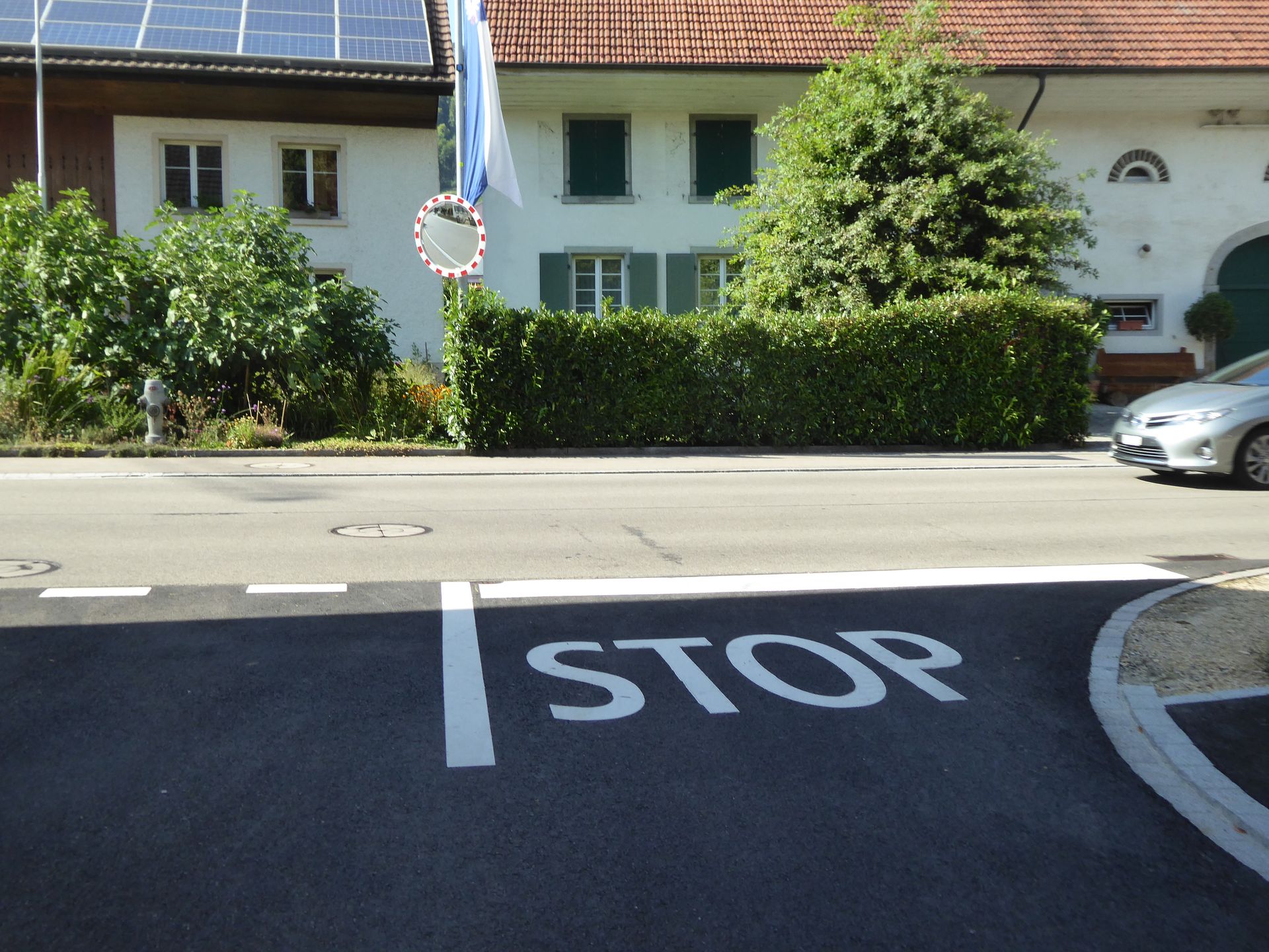 Die neue Ueberbauung anstelle der "Ziegelhütte" diese moderne Bauweise war nur möglich weil das ISOS geschütze Dorfteil erst nach der Brücke ins Dorf beginnt.